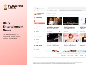 Starbuzz News & Search هو ملحق قائم على الاشتراك لمتصفح Firefox يركز على أحدث أخبار الترفيه، بما في ذلك شائعات المشاهير، واتجاهات الموسيقى، وتحديثات نمط الحياة. يمكن للمستخدمين التنقل بسهولة عبر فئات مثل أخبار المشاهير والتلفزيون والأفلام لاكتشاف أحدث القصص. كما يتيح الملحق للمستخدمين إضافة المقالات إلى المفضلة للقراءة لاحقًا ومشاركتها عبر البريد الإلكتروني أو وسائل التواصل الاجتماعي، مما يعزز تجربة المستخدم بشكل عام.